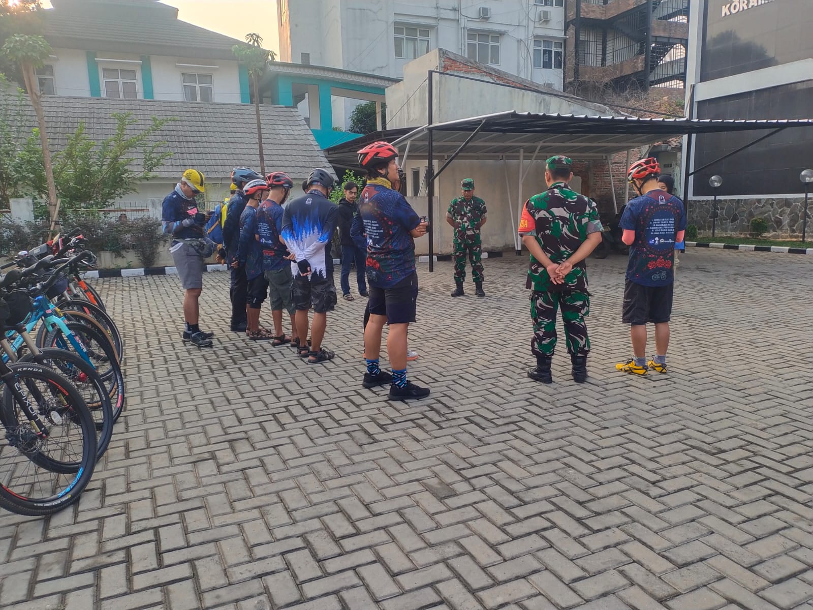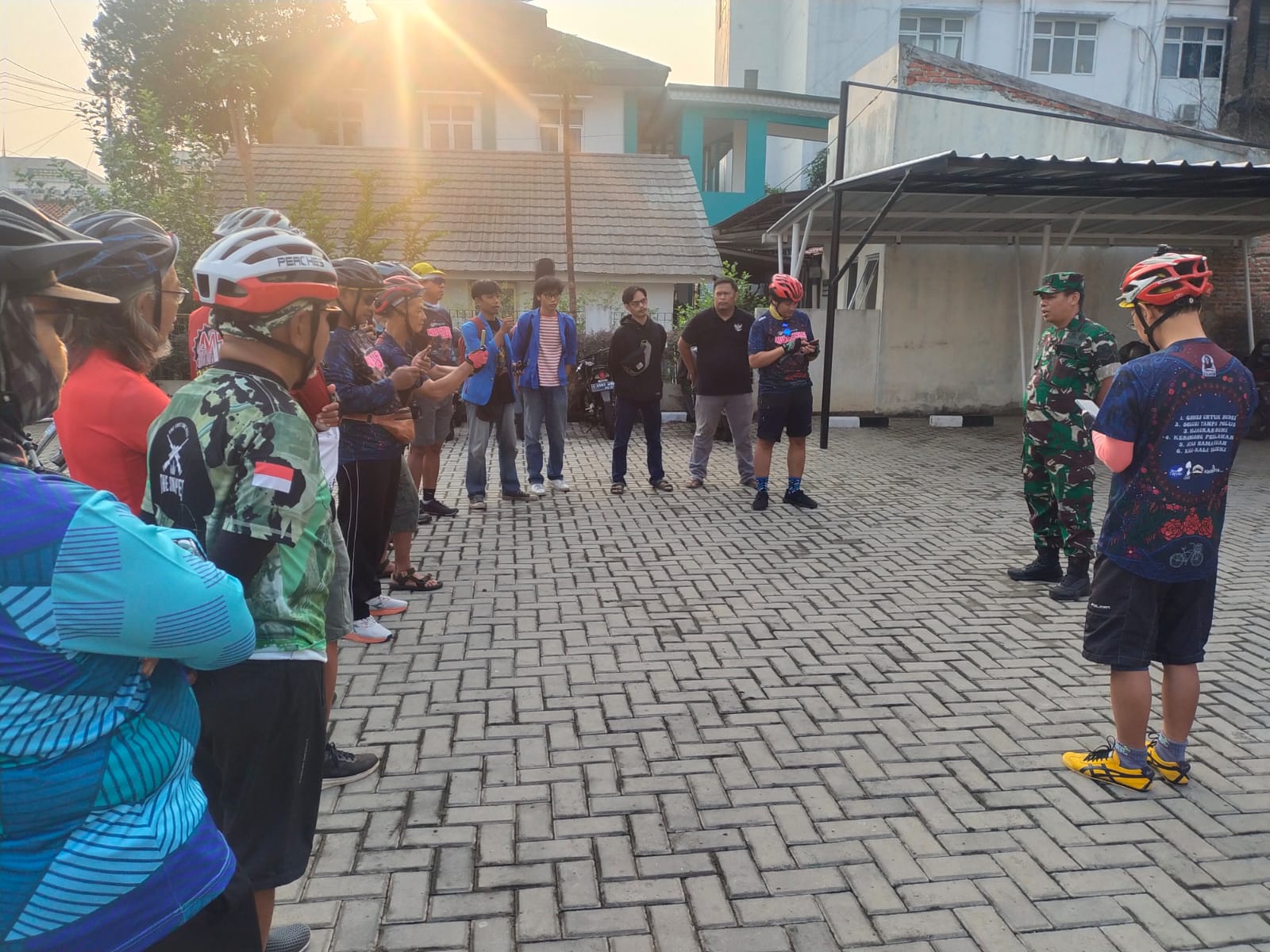 Peserta gowes bersemangat berkumpul di depan Koramil 08/Pml sejak pagi hari, mempersiapkan diri untuk perjalanan sepeda yang akan membawa mereka ke Bandung.