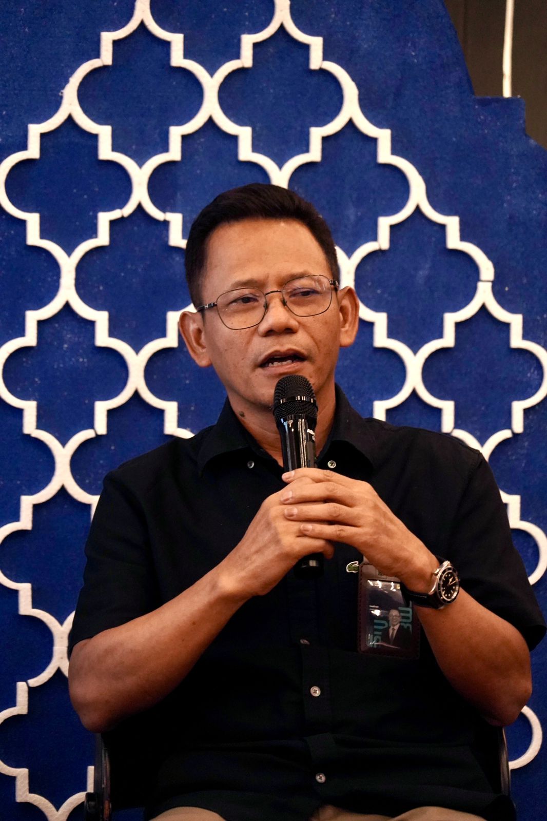 Keterangan Gambar : (Kiri) Manager Komunikasi dan TJSL, Pandu Prastyani bersama (Kanan) General Manager PLN Unit Induk Distribusi Jakarta, Lasiran dalam kegiatan talkshow Press briefing_ kesiapan listrik jelang Idul Fitri dan buka bersama media (3/4).