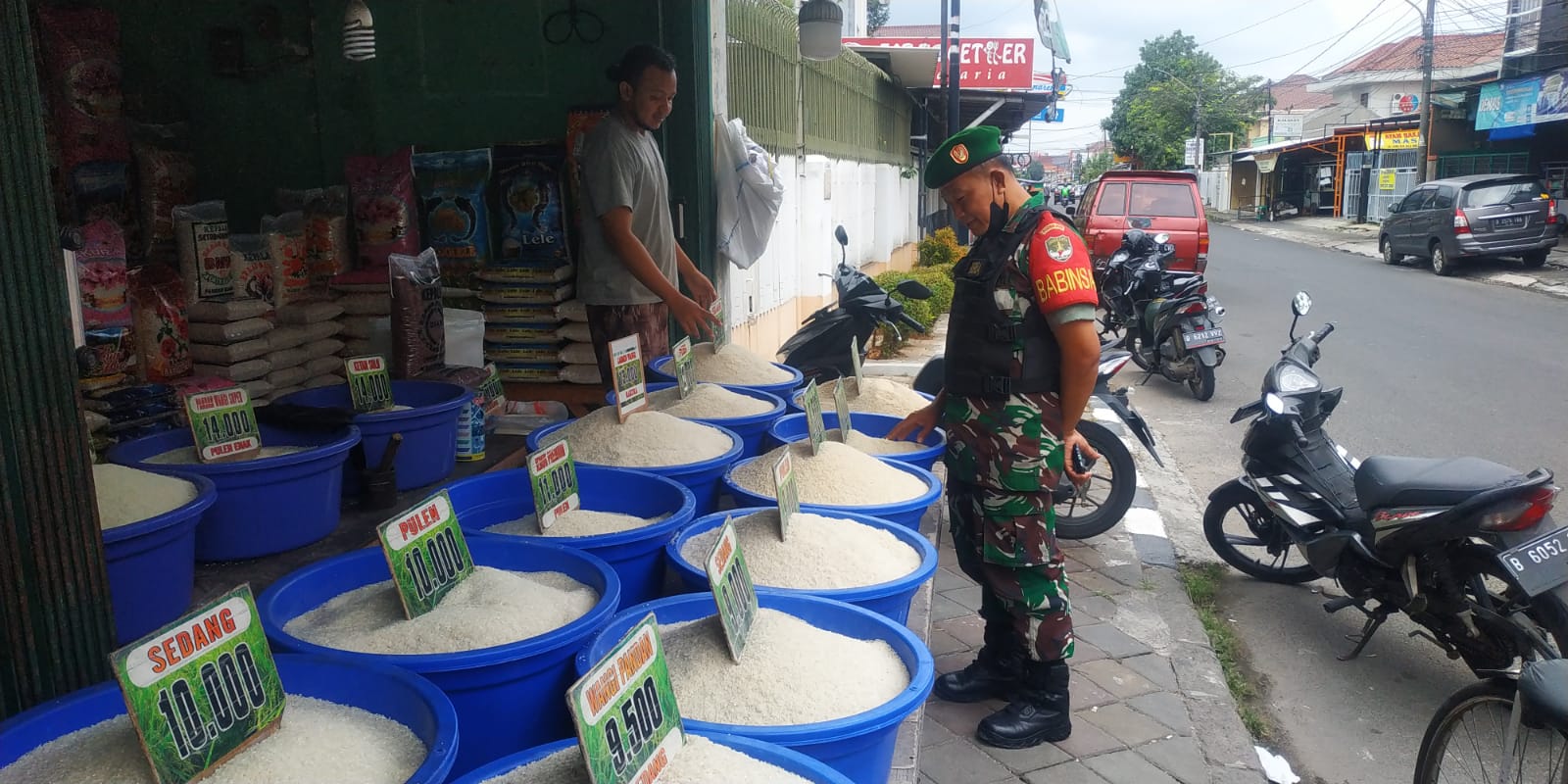 Jelang Imlek Babinsa Cek Langsung Harga Sembako di Pasar Lama