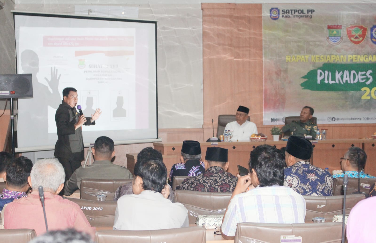 Dalam sambutannya Sekda mengatakan rapat bertujuan untuk menyatukan visi dan misi dalam rangka untuk mempersiapkan pengamanan pelaksanaan Pilkades serentak sehingga demokrasi di desa dapat berjalan aman, langsung, umum, bebas dan rahasia.