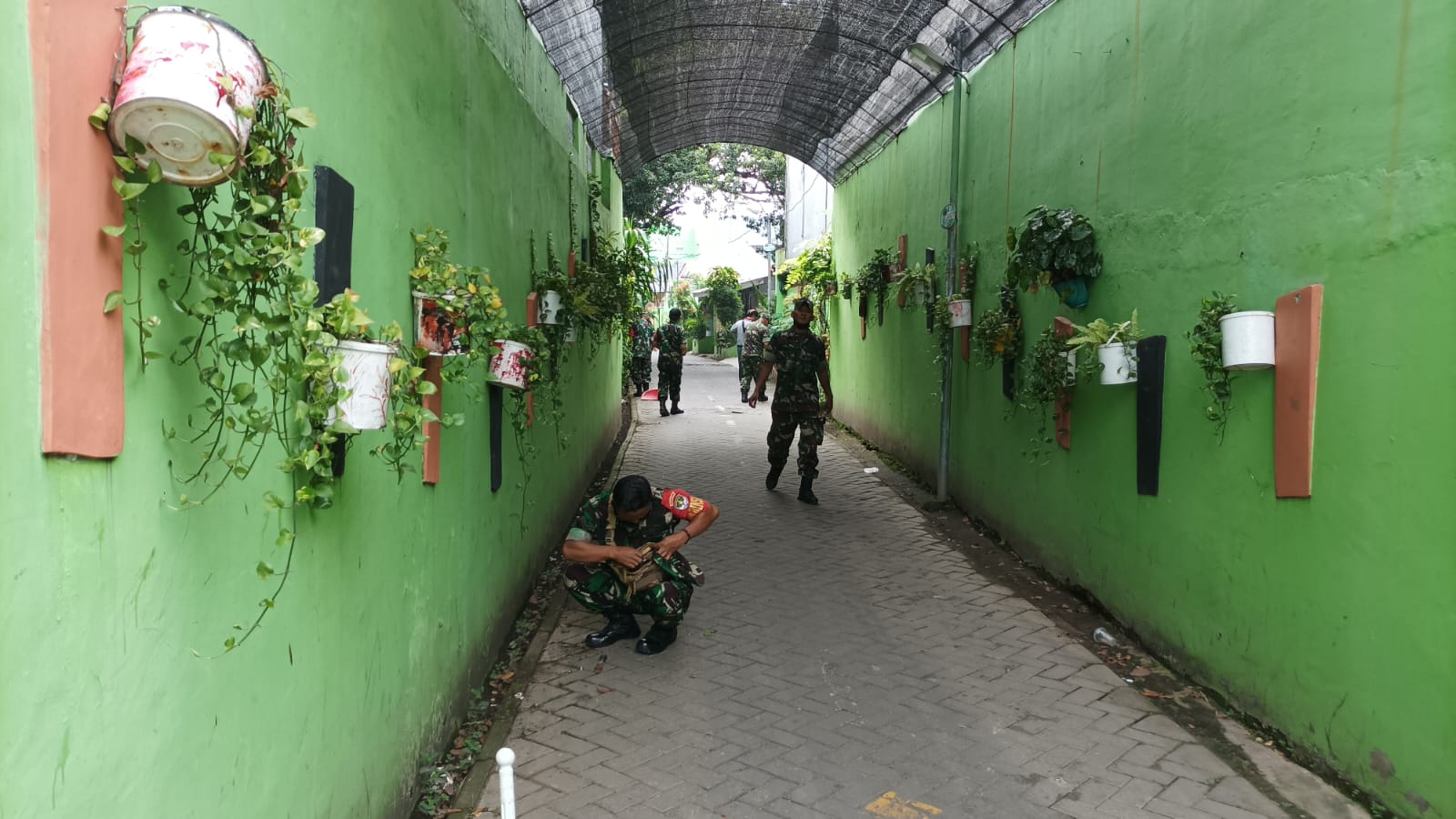 Kerja Bakti Babinsa Bersihkan Jalan dan Taman di Kampung Pancasila