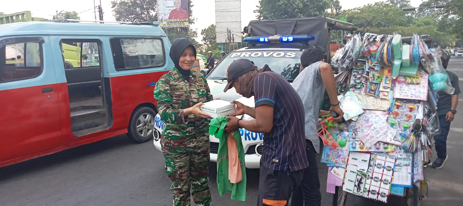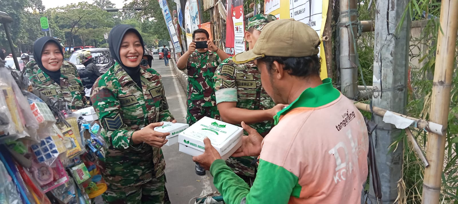 Keterangan Gambar : Kodim 0506/Tgr kembali menggelar Program Jumat Berkah dengan membagikan dengan berbagi makanan dan minuman