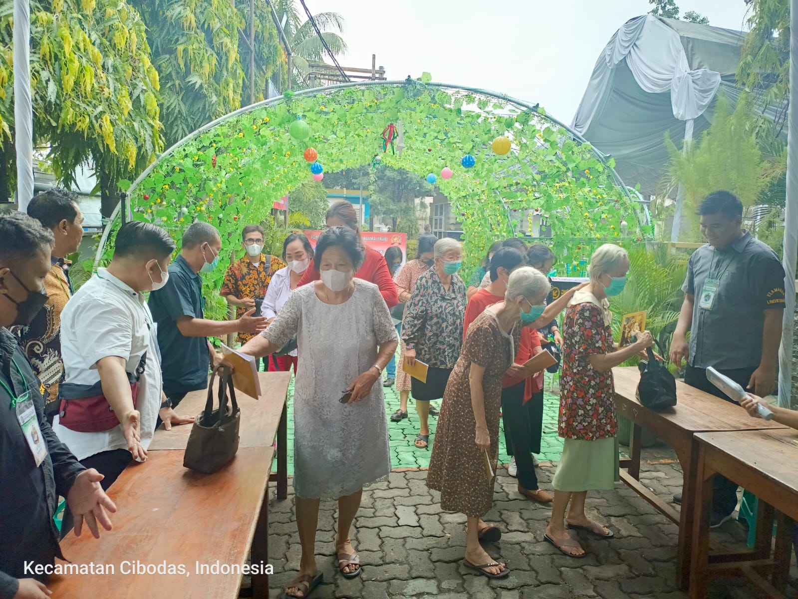Keterangan Gambar : Koramil 06/CBD, Kodim 0506/Tgr yang di pimpin Serma Diky memonitoring kegiatan Perayaan Misa Natal Sesi 2 di Gereja Santo Agustinus