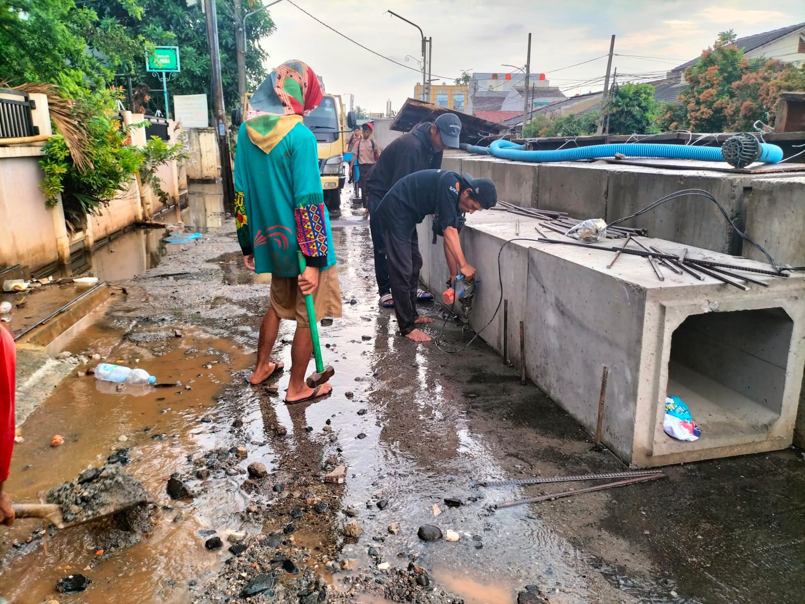 Peltu Ahmad perwakilan Babinsa Koramil 07/Pondok Aren menyampaikan pelaksanaan pembuatan saluran air ini, dilakukan dengan penggalian tanah untuk pembuatan pembangunan pondasi awal, sehingga ketahanan gorong - gorong akan lebih kuat dan maksimal.