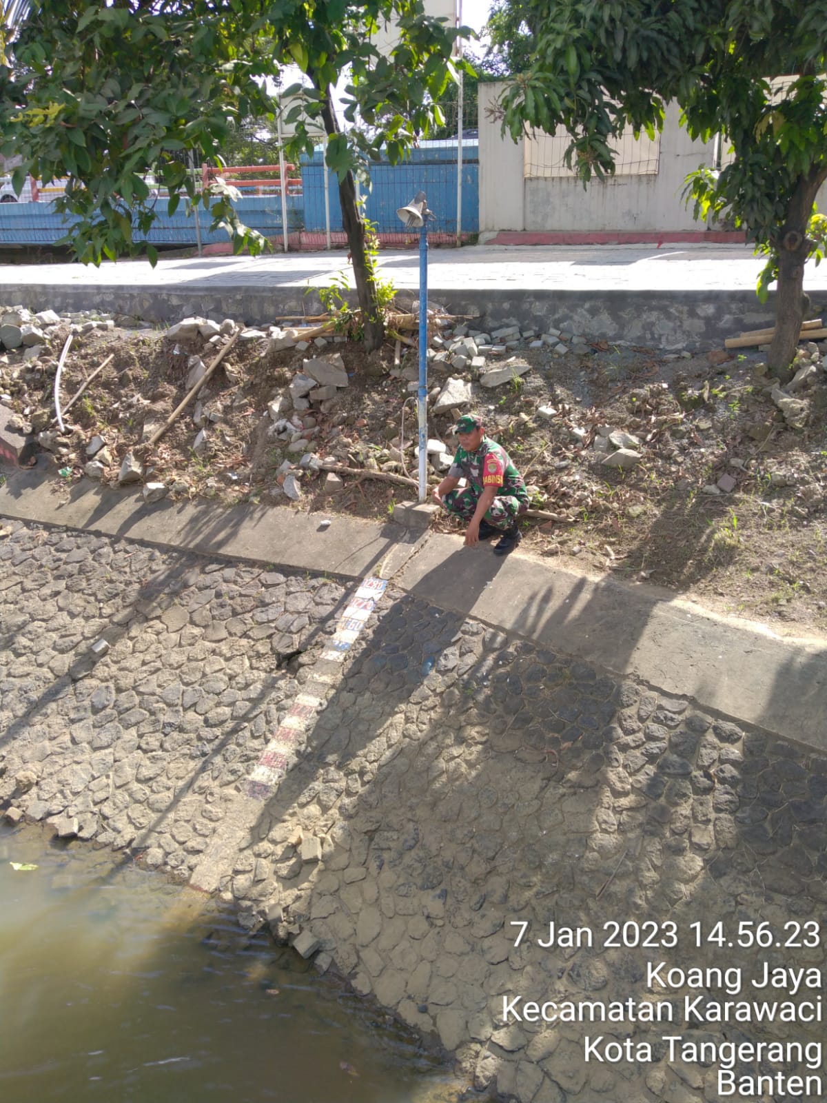 MEGAPOLITANPOS.COM Kota Tangerang - Masih musim penghujan Babinsa Koang Jaya, Koramil 01/Tgr, Kodim 0506/Tgr bersama Bhabimkamtibmas melakukan pemantauan ketinggian air.