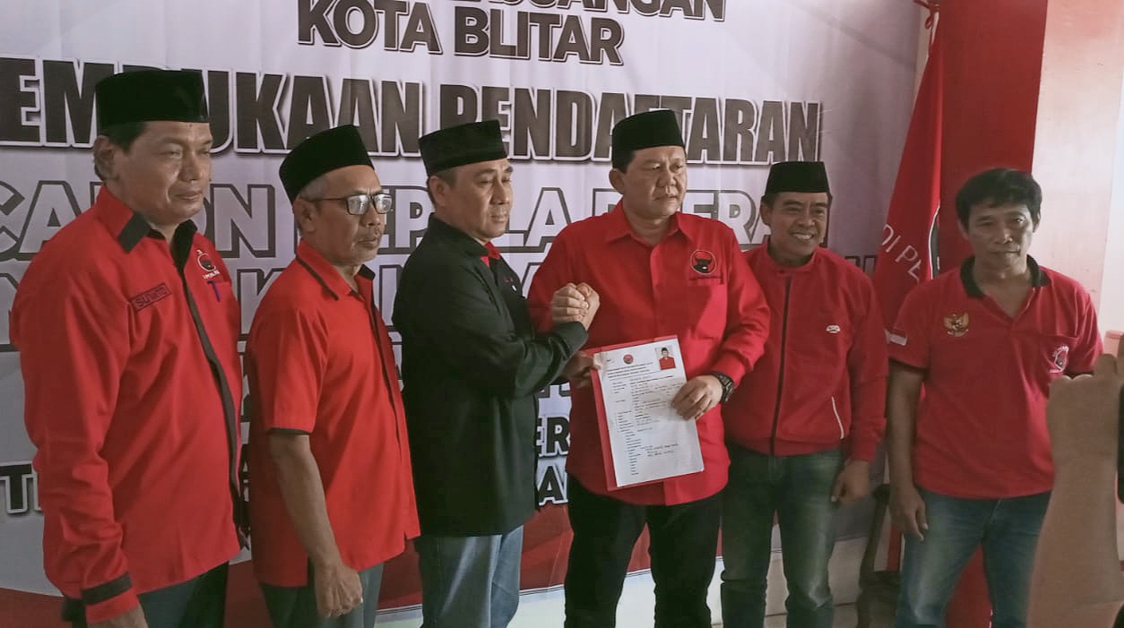 Bambang mengantarkan secara langsung menyerahkan formulir pendaftaran tersebut kepada Ketua Bapilu DPC PDI Perjuangan kota Blitar Sukarji dan strultural partai.