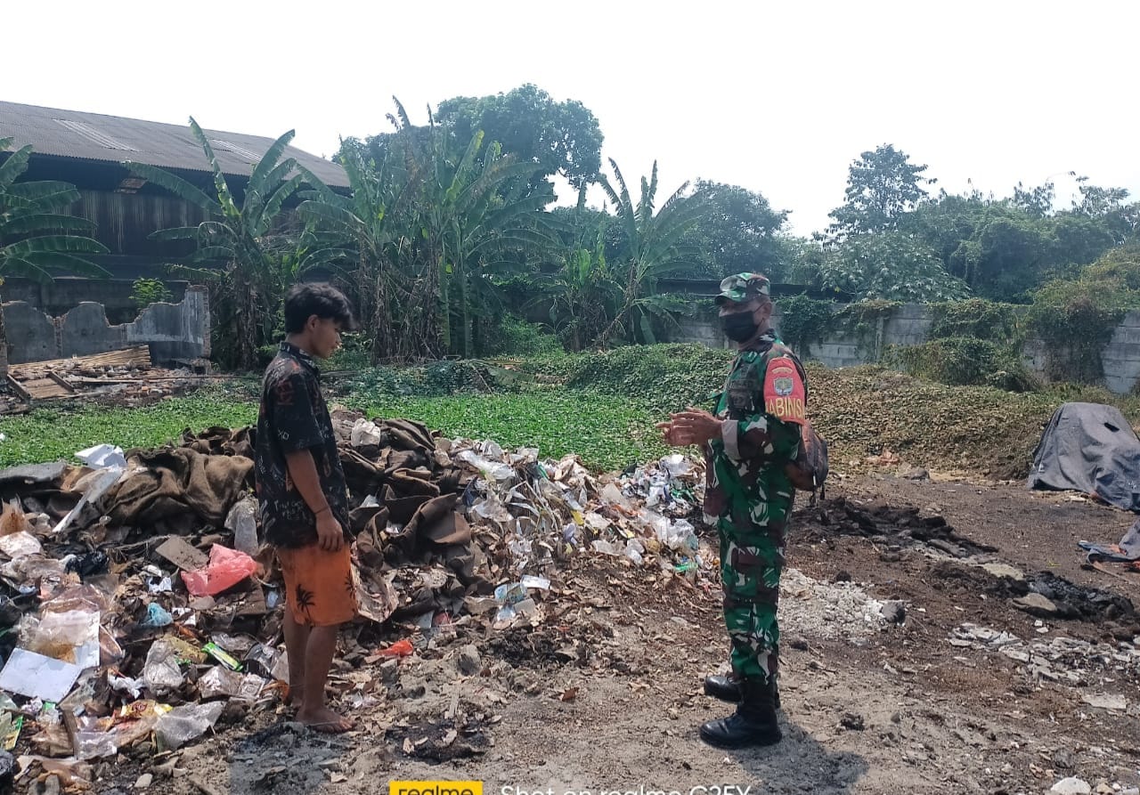 Danramil 05/Balaraja Kapten Inf Ali Maskuri SE menjelaskan, Serda Lukman Babinsa Desa Kubang mengimbau agar warga masyarakat binaan tidak melakukan pembakaran sampah apalagi sampah di lahan yang kosong.