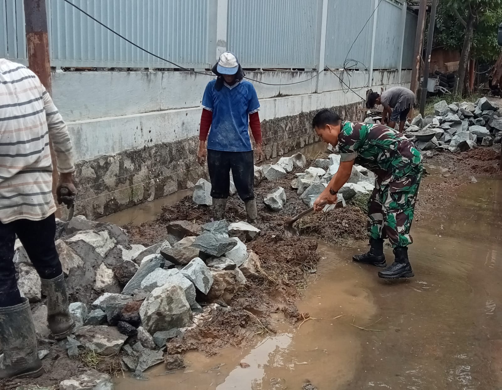 Peduli, Babinsa Kenanga Bantu Warga Buat Saluran Air