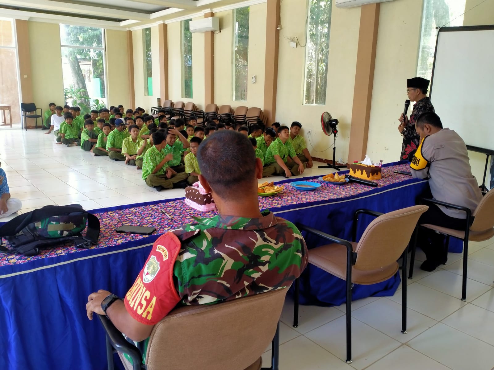 Keterangan Gambar : Bintara Pembina Desa (Babinsa) Kutruk, Koramil 06/Trs, Kodim 0510/Trs Serma Yayan Sopyan memberikan pembinaan dan penyuluhan kenakalan remaja, di MTs Yabika Desa Kutruk Kecamatan Jambe