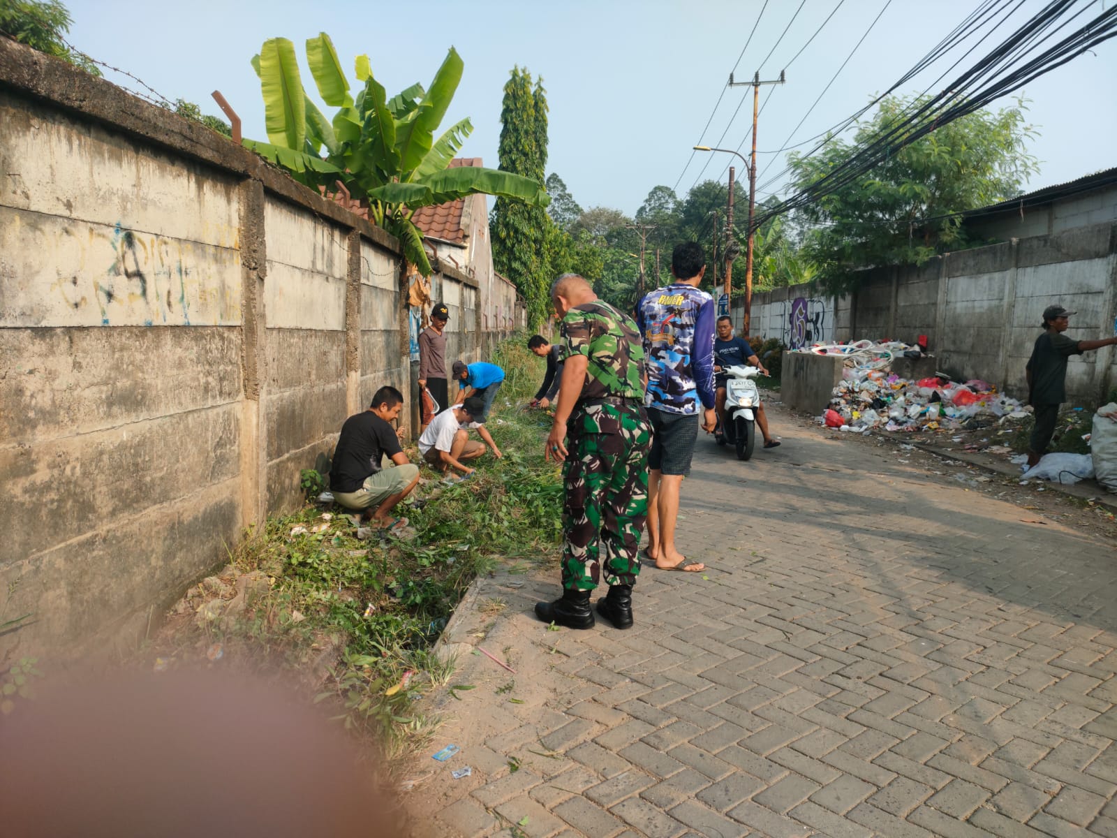 Peduli Lingkungan, Prajurit Koramil 01/Tgr Bersihkan Lingkungan