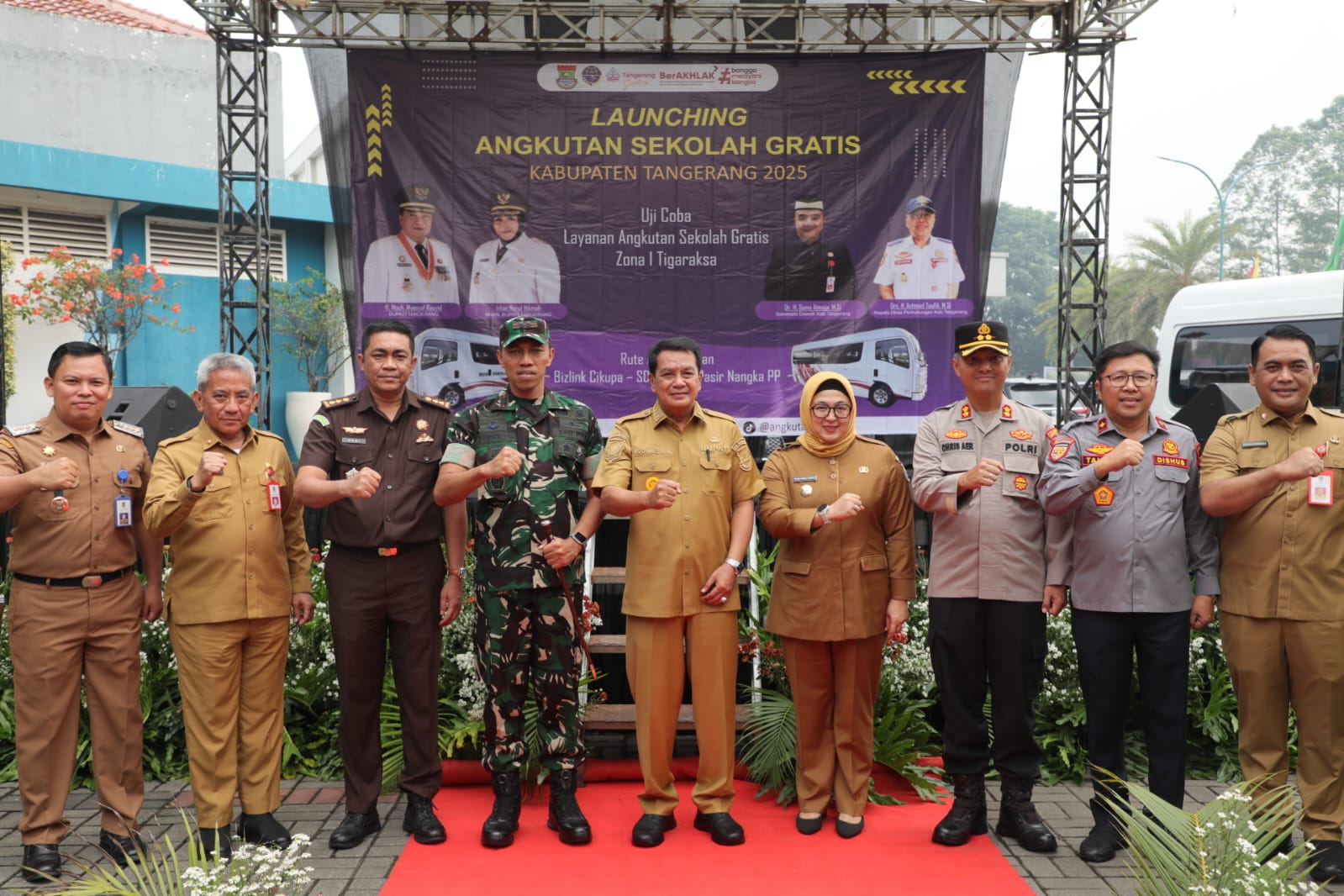 MEGAPOLITANPOS.COM Kabupaten Tangerang - Pemerintah Kabupaten Tangerang resmi meluncurkan program ujicoba angkutan sekolah gratis untuk pelajar di wilayah Kabupaten Tangerang. Acara peluncuran program tersebut dilakukan langsung oleh Bupati Tangerang, Moch. Maesyal Rasyid, bersama Wakil Bupati Tangerang, Intan Nurul Hikmah di area Bizpoint, Kecamatan Cikupa. Selasa, (10/6/2025).