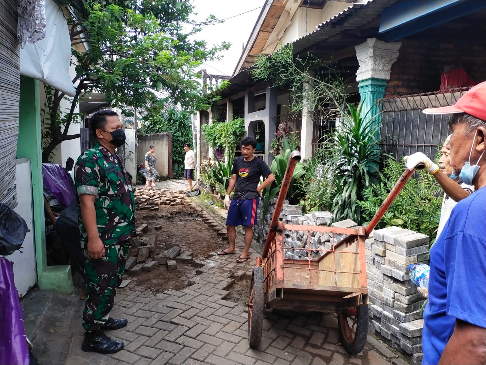 Dandim 0506/Tgr Letkol Inf Ali Imran melalui Danramil 04/Ciledug Kapten Arh Jaminah Arie Yanto menyampaikan, Babinsa melakukan pemasangan paving membaur bersama warga. Kegiatan karya bhakti ini sebagai wahana untuk menumbuhkembangkan hidup gotong royong masyarakat.