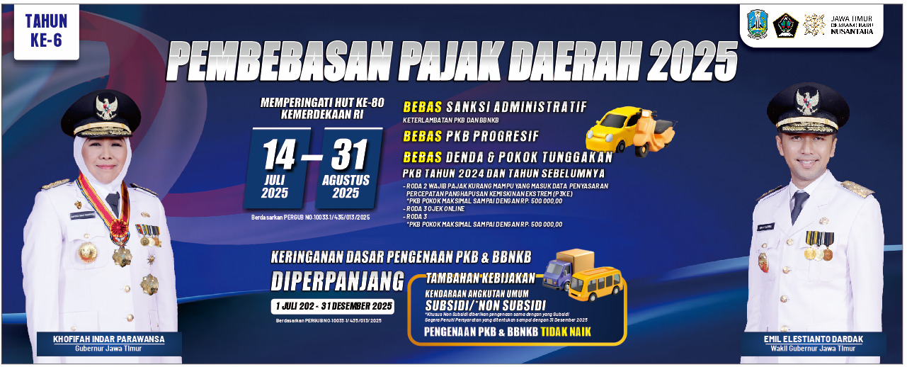 Peringati HUT RI ke 80 Kembali Gubernur Jatim Menetapkan Kebijakan Pembebasan Pajak Daerah 2025