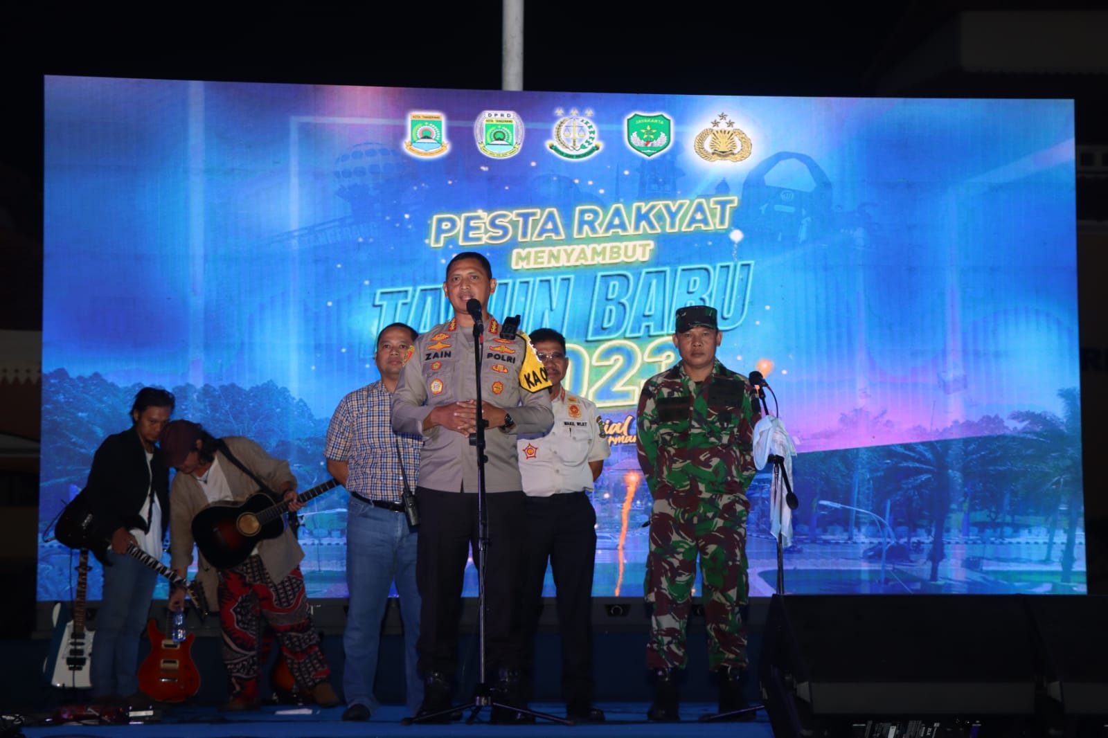 Detik-detik bergantinya tahun baru 2023, begitu terasa setelah jam menunjukkan pukul 23.55 WIB. Wali Kota Tangerang Arief R Wismansyah bersama Kapolres Metro Tangerang Kota Kombes Pol Zain Dwi Nugroho berada di atas panggung musik yang digelar sejak pukul 22.00 WIB.