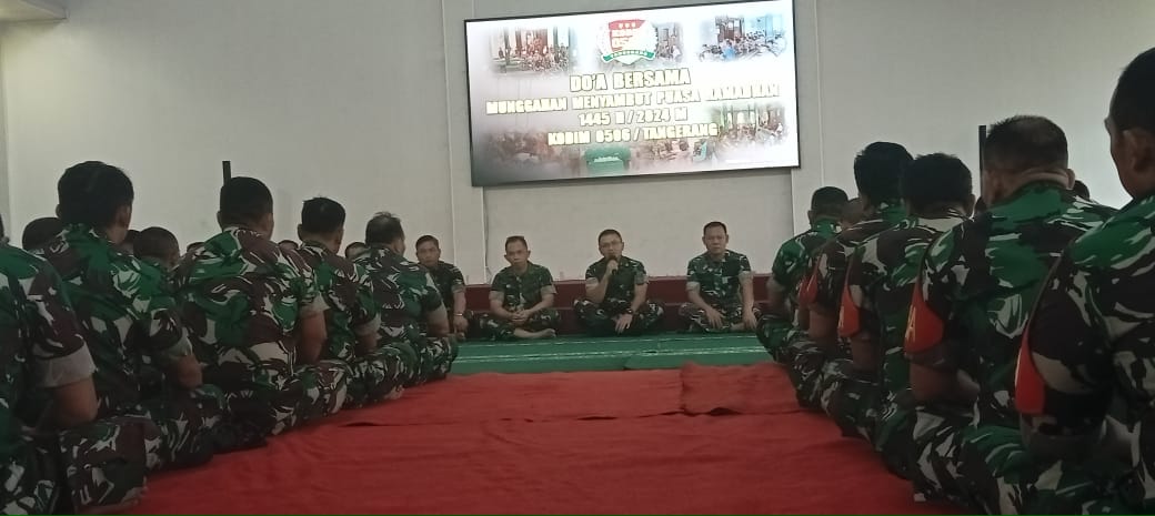 MEGAPOLITANPOS.COM Kota Tangerang - Dalam rangka menyambut bulan suci Ramadhan keluarga besar Kodim 0506/Tgr menggelar tradisi munggahan dan Do'a bersama untuk persiapan Puasa Ramadhan 1445 H/2024 M di Aula Palapa Jalan TMP. Taruna No. 1 Kelurahan Sukasari Kecamatan Tangerang Kota Tangerang, Jumat (08/03/2024).