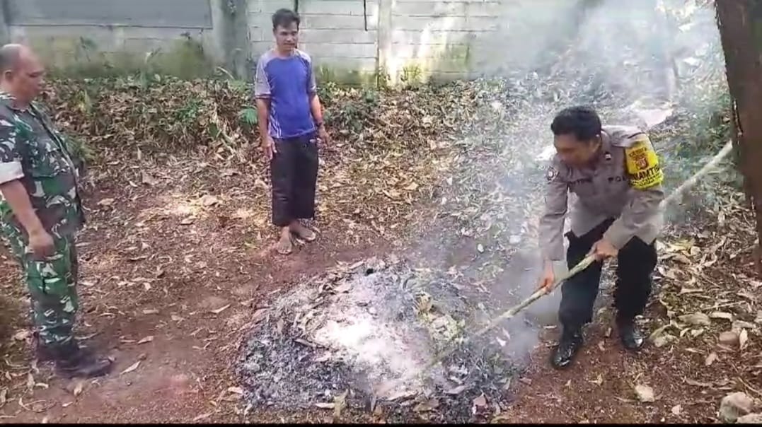 Danramil 05/Ciputat Mayor Inf Tarsan menjelaskan, dalam patroli di wilayah binaan Sertu Sugeng menemukan pembakaran sampah yang dilakukan oleh warga dan langsung di padamkan oleh Babinsa dan Bhabimkamtibmas.
