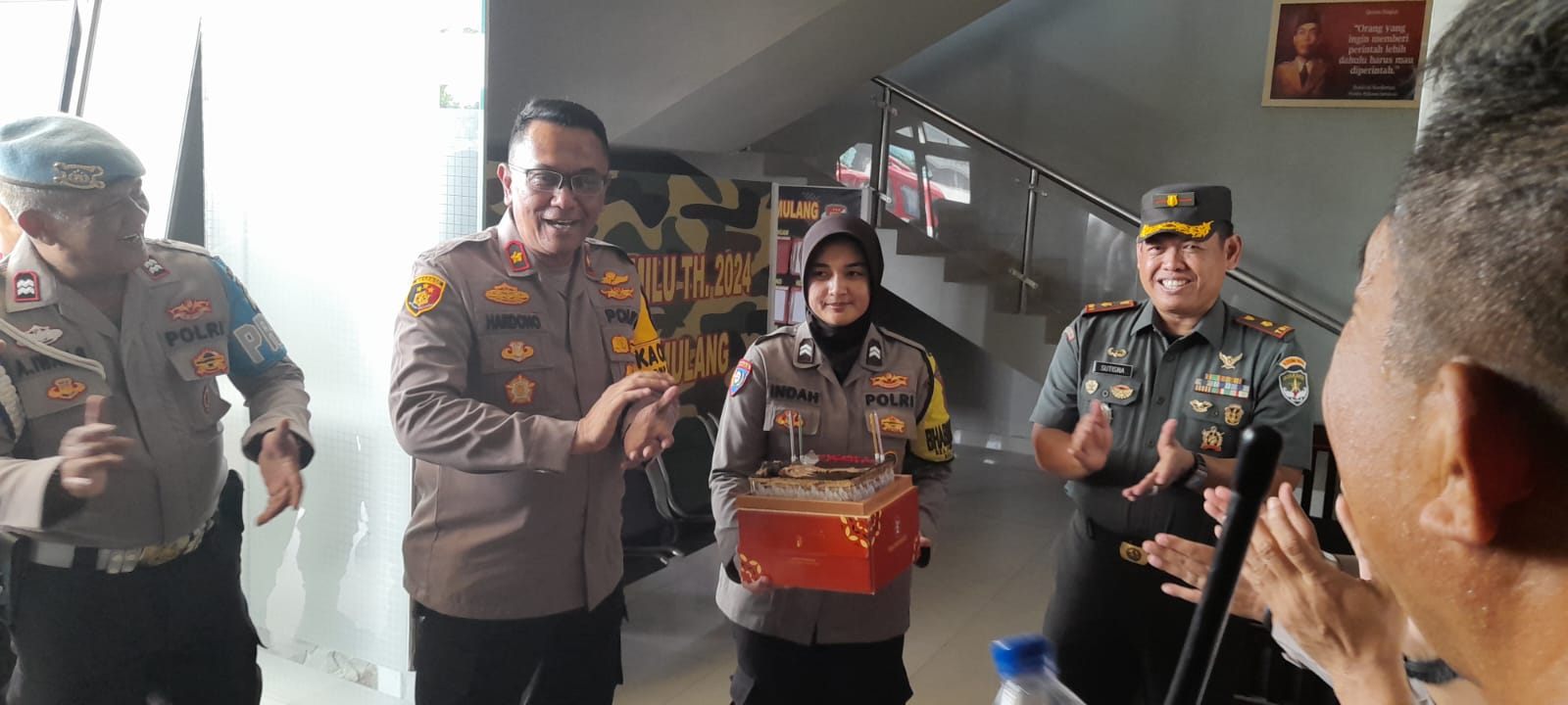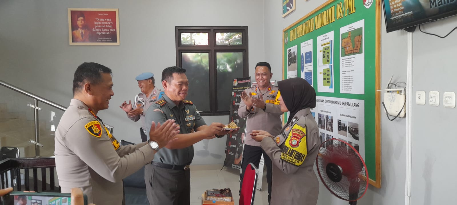 Kehadiran Kapolsek beserta anggotanya mengejutkan anggota Koramil yang tidak menduga akan adanya kunjungan tersebut. Ternyata, tujuan kunjungan untuk memberikan ucapan selamat dalam rangka memperingati Hari Ulang Tahun Tentara Nasional Indonesia (TNI) ke-79.