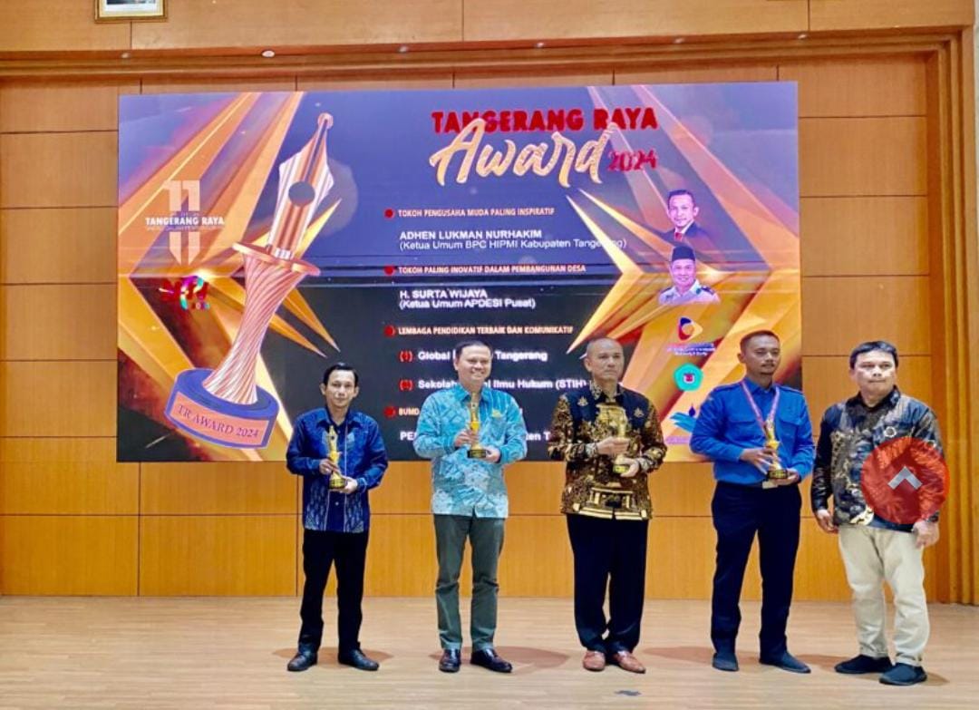 Trhopy penghargaan Tangerang Raya Award 2024 di berikan langsung oleh Pimpinan Perusahaan Koran Harian Tangerang Raya, Haris Sujarsad kepada Ketua STIH Painan Dr. Muh Nasir, bersamaan dengan penerima Award lainnya, di Gedung Pusat Pemerintahan Kota Tangerang saat kegiatan tersebut dihelat, Selasa (6/2/2024) lalu.