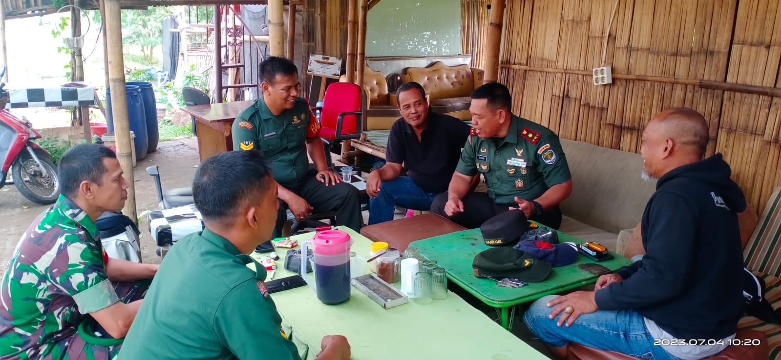 Hari ini, Mayor CHB Sutisna didampingi anggotanya Sertu J Amran Simangunsong, Serda Junaidi dan Serda Rizal Aiyub Babinsa Kel Pamulang Timur melaksanakan kegiatan rutin dan berkesinambungan melaksanakan memonitoring kewilayahan dengan berkunjung ke Gerbang Emas Pamulang di RT 01/18, Kelurahan Pamulang Timur, Kecamatan Pamulang, Kota Tangerang Selatan, Selasa (04/07/2023).