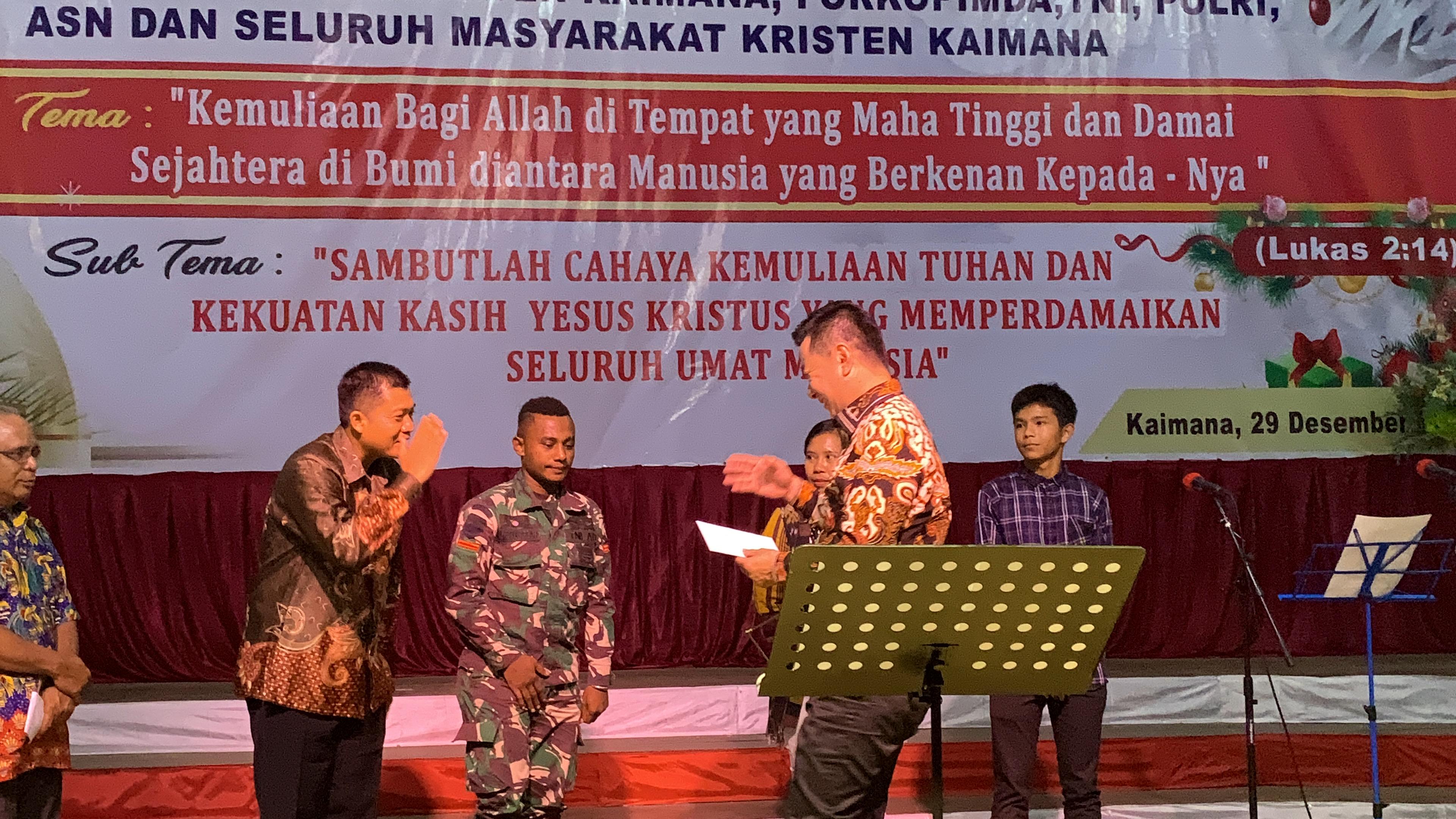 MEGAPOLITANPOS.COM Papua Barat - Terus meraih prestasi Yonif 764/IB menorehkan keberhasilan, salah satunya meraih juara satu taman Natal tingkat Kabupaten Kaimana, hadiah di berikan langsung oleh Bupati Kaimana Freddy Thei kepada Danyonif 764/IB Letkol Inf Ucok Namara yang di wakili Wadanyonif 764/IB Kapten Inf Luki Popor. Kegiatan dilakukan Gedung pertemuan Krooy Kabupaten Kaimana, Jum'at (29/12/2023).
